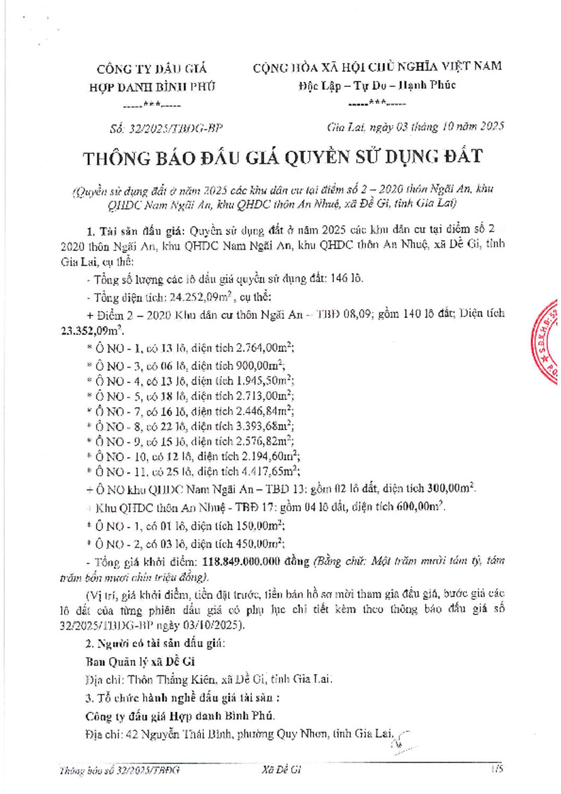 | Loại văn bản | Thông báo | Người ký | Công ty đấu giá hợp danh Bình Phú |