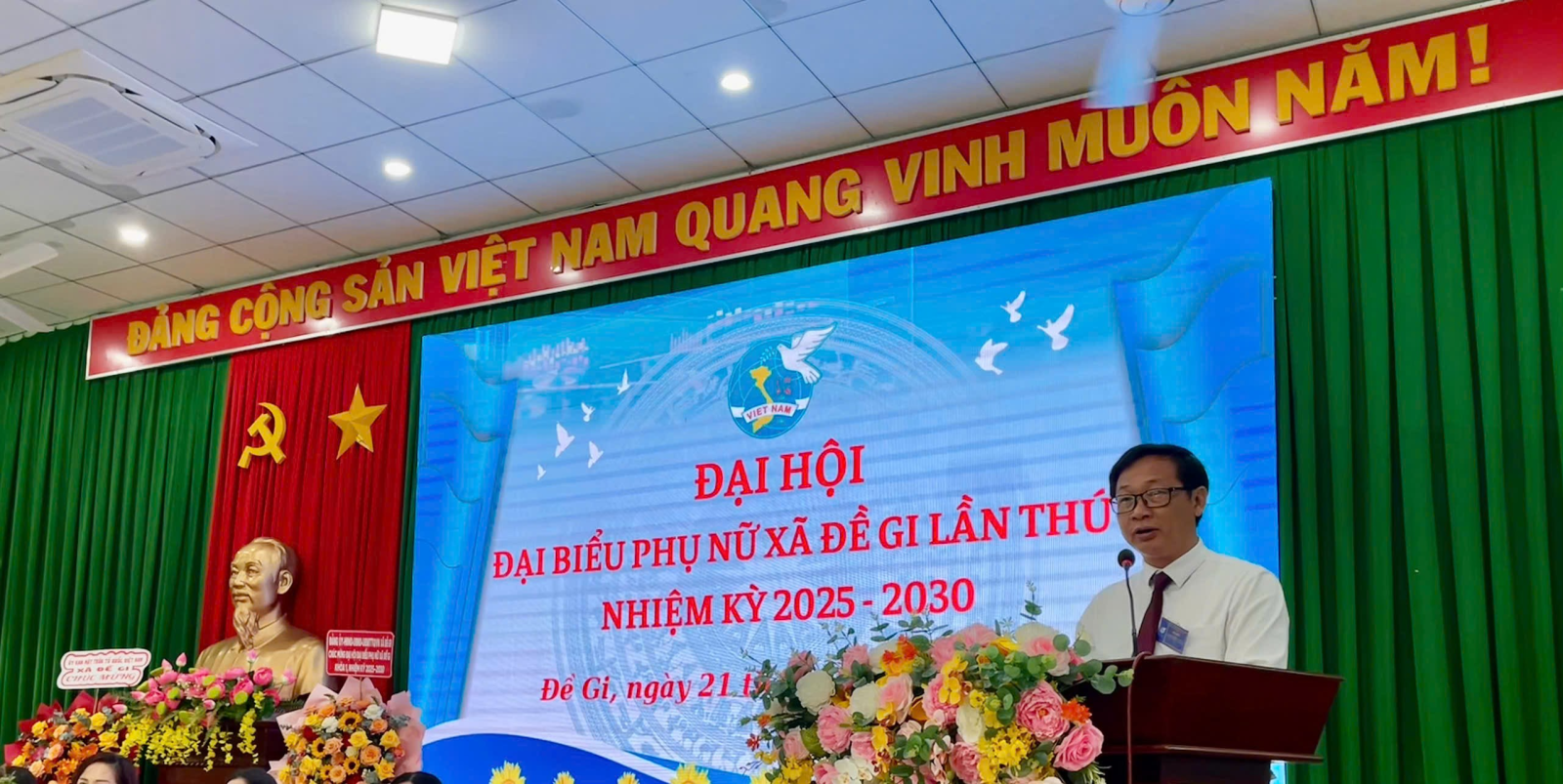 Thay mặt Đảng ủy xã, đồng chí Võ Trần Khoái - Phó Bí thư Thường trực Đảng ủy xã Đề Gi phát biểu chỉ đạo Đại hội, ghi nhận và biểu dương những nỗ lực, đóng góp của Hội LHPN xã trong nhiệm kỳ qua. Đồng chí đề nghị trong nhiệm kỳ tới, Hội tiếp tục phát huy truyền thống đoàn kết, trách nhiệm, tích cực tham mưu, đề xuất với cấp ủy, chính quyền về công tác phụ nữ; chú trọng đào tạo, bồi dưỡng đội ngũ cán bộ Hội có năng lực, tâm huyết; tăng cường phối hợp với các ban, ngành, đoàn thể triển khai hiệu quả các phong trào thi đua, góp phần thực hiện thắng lợi Nghị quyết Đại hội Đảng bộ xã và mục tiêu phát triển kinh tế - xã hội địa phương.