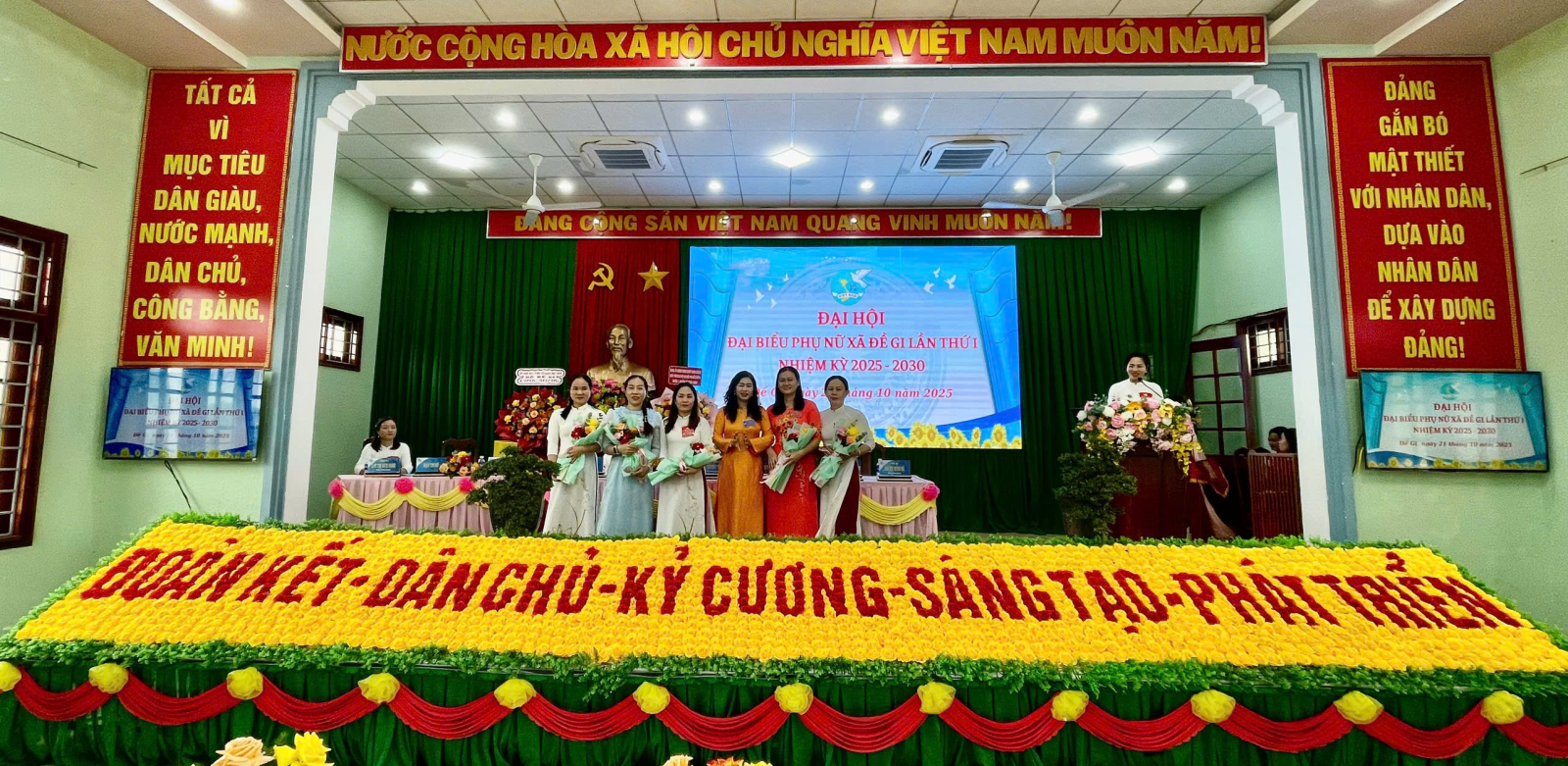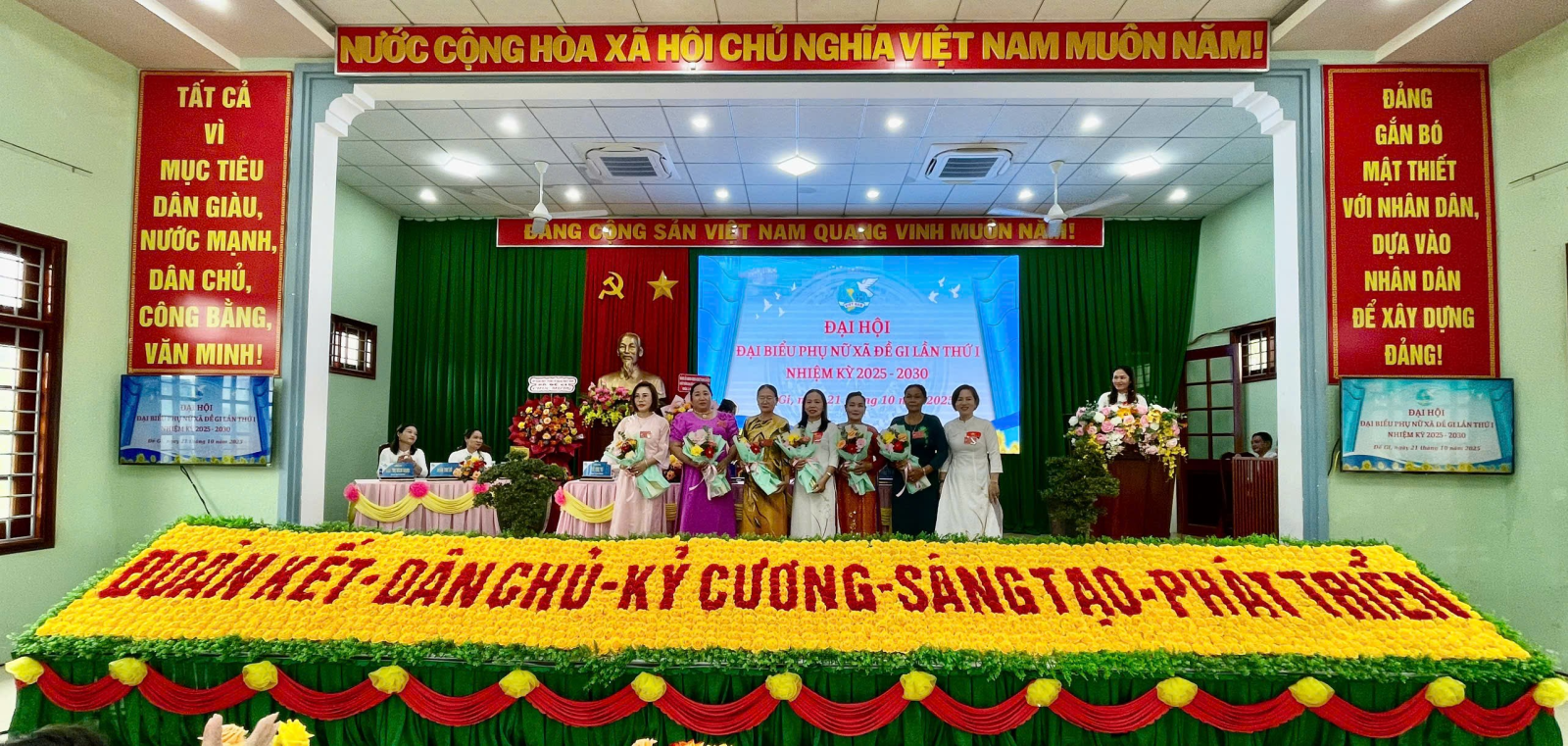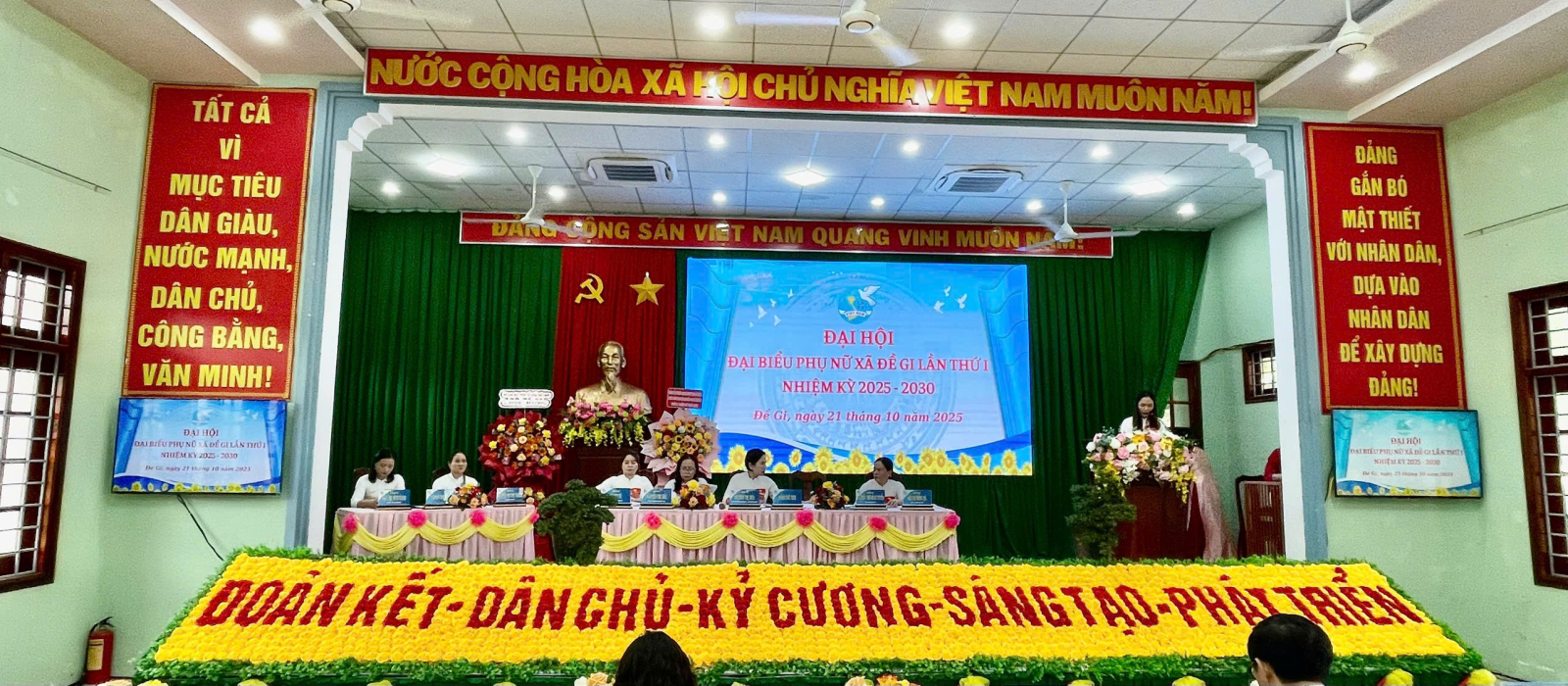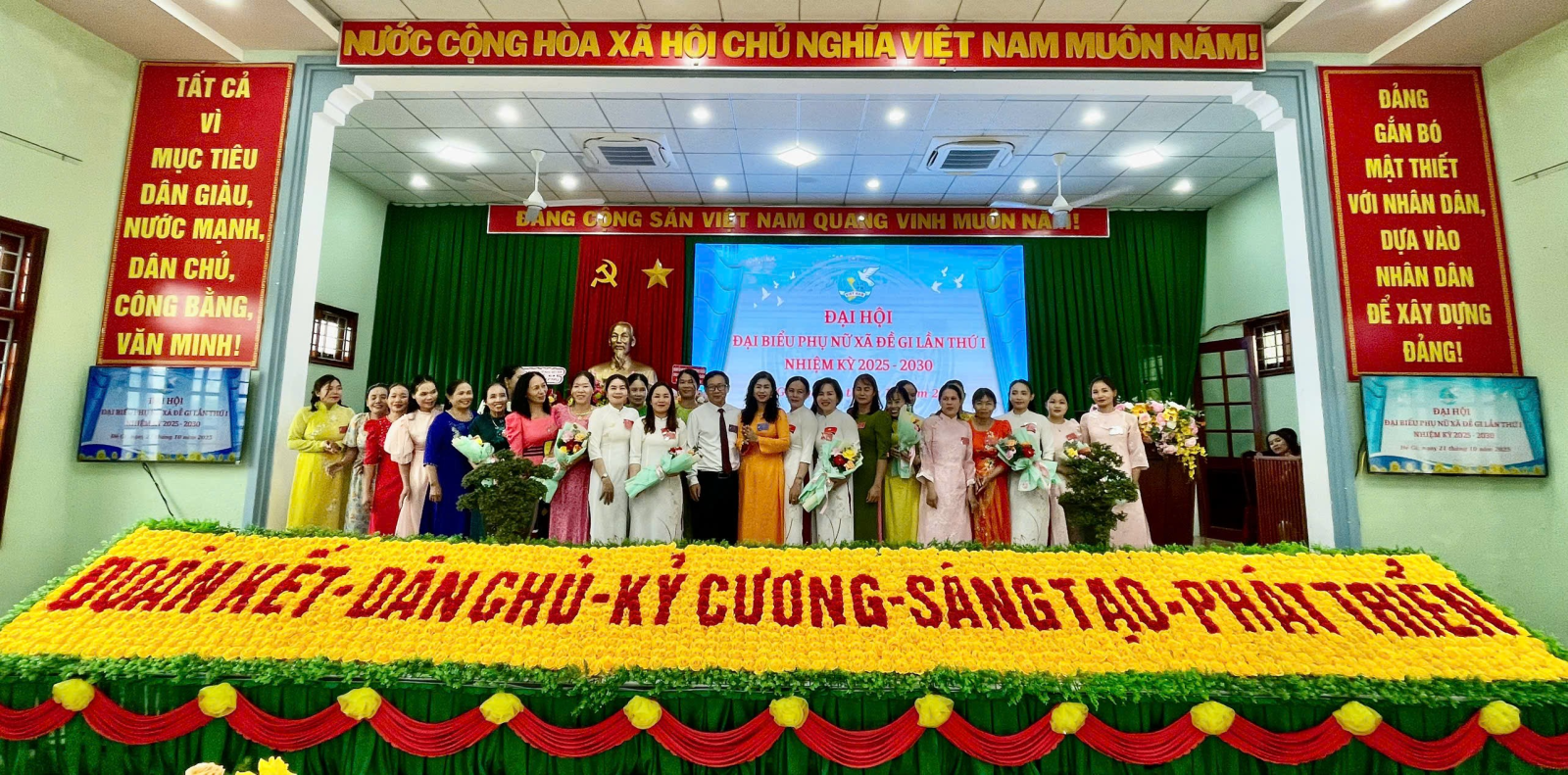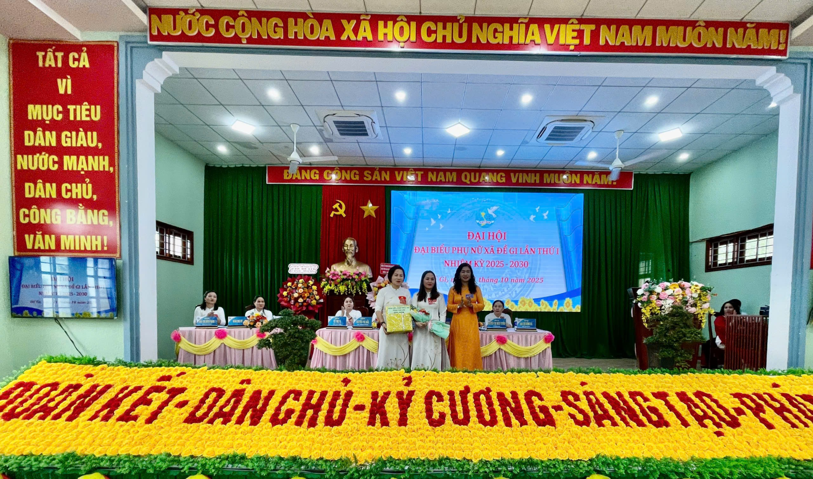 Ban Chấp hành khóa mới ra mắt Đại hội, bày tỏ quyết tâm đoàn kết, trách nhiệm, sáng tạo, thực hiện thắng lợi các mục tiêu, nhiệm vụ mà Nghị quyết Đại hội đã đề ra, góp phần cùng Đảng bộ và nhân dân xã Đề Gi xây dựng quê hương ngày càng phát triển, giàu đẹp, văn minh, hạnh phúc.