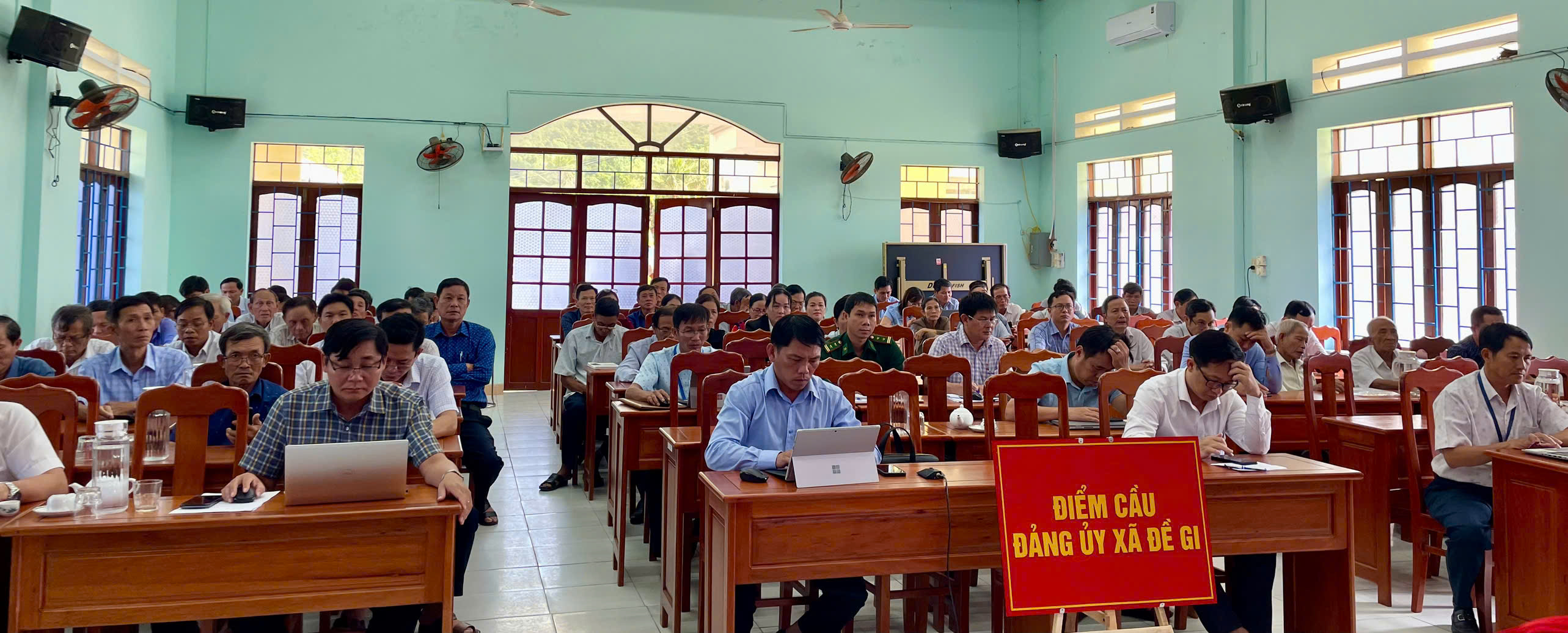 Tại điểm cầu xã Đề Gi, Hội nghị được Đảng ủy xã Đề Gi tổ chức nghiêm túc, chu đáo và đúng kế hoạch. Đồng chí Phạm Dũng Luận – Bí thư Đảng ủy, Chủ tịch HĐND xã chủ trì hội nghị. Tham dự có các đồng chí trong Thường trực, Ban Thường vụ, Ban Chấp hành Đảng bộ xã; lãnh đạo và chuyên viên các ban, ngành, đoàn thể; bí thư chi bộ, trưởng thôn cùng đại diện các trường học trên địa bàn xã.