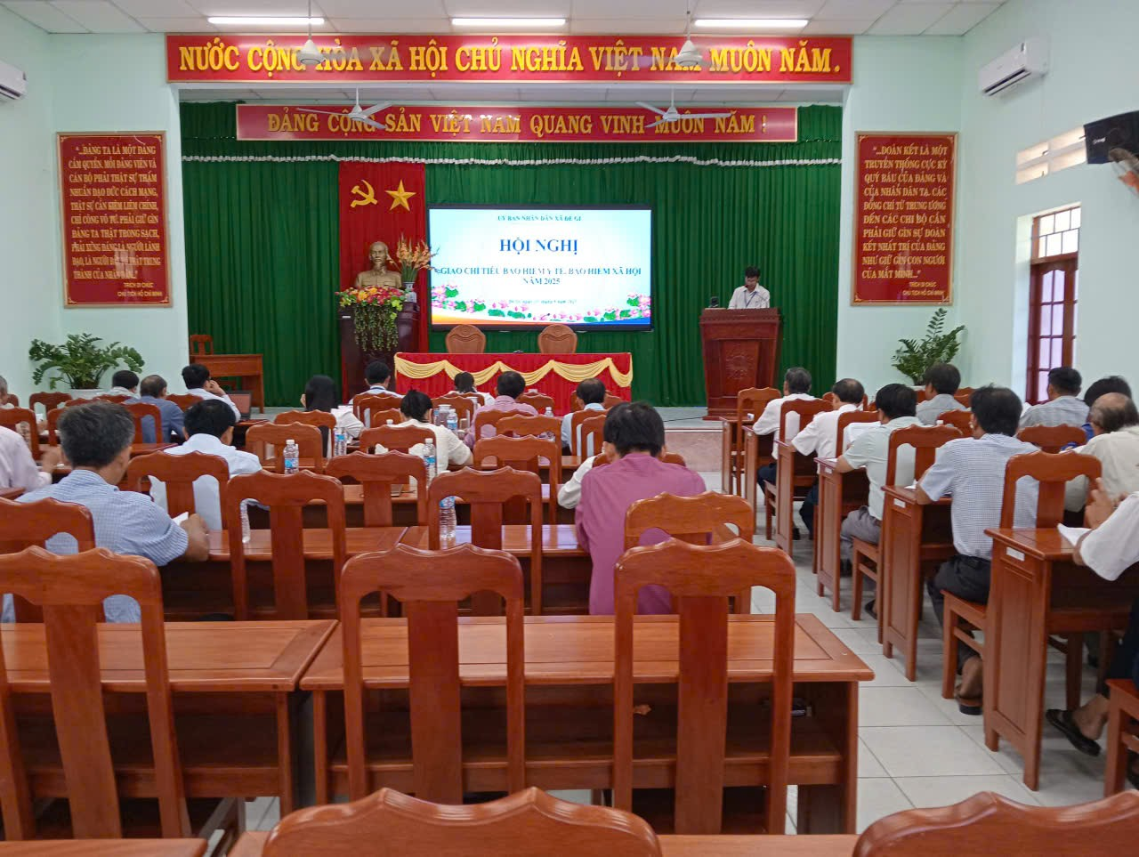 Tại hội nghị, ông Lê Đức Hiền, Trưởng phòng Văn hóa – Xã hội xã, đã công bố Quyết định giao chỉ tiêu phát triển người tham gia BHXH, BHYT đến cuối năm 2025. Theo đó, toàn xã đặt mục tiêu: Nâng tỷ lệ tham gia BHYT đạt trên 96,8% dân số; Phát triển tối thiểu 500 người tham gia BHXH tự nguyện vào cuối năm 2025.