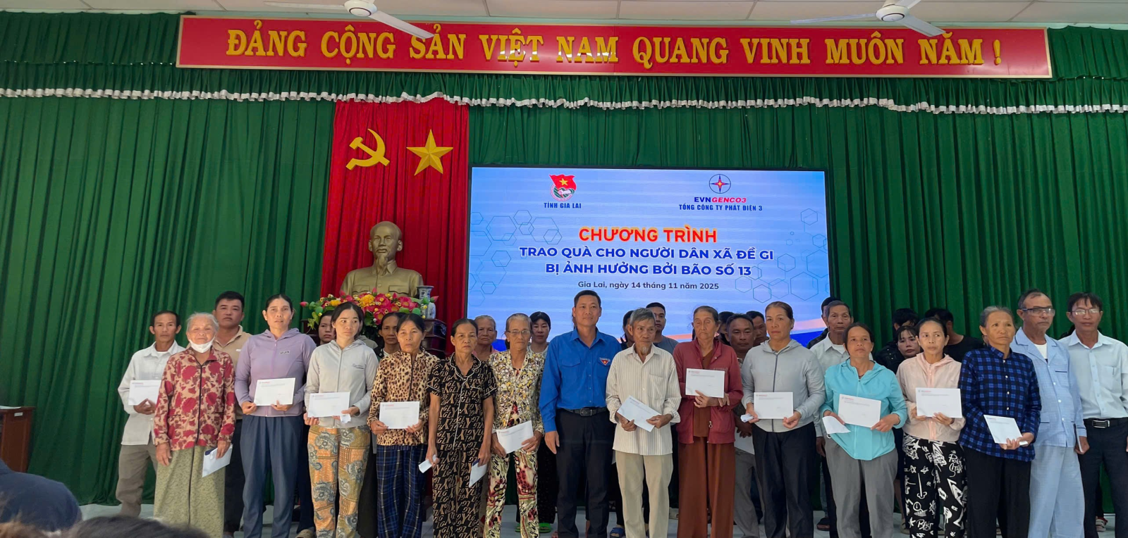 Phát biểu tại chương trình, đại diện Tỉnh đoàn Gia Lai gửi lời cảm ơn sâu sắc đến Tổng Công ty Phát điện 3 vì đã kịp thời đồng hành cùng tuổi trẻ tỉnh nhà trong các hoạt động an sinh xã hội, hỗ trợ người dân vượt qua khó khăn sau thiên tai. Đại diện lãnh đạo xã Đề Gi cũng bày tỏ lòng biết ơn trước sự quan tâm, sẻ chia thiết thực dành cho địa phương.